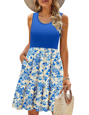 Zeagoo Beach Dresses for Women Sleeveless Sundress Summer Boho Dress Womens Tank Dress Crewneck Casual Flower Dress High Wasit Short Dress S