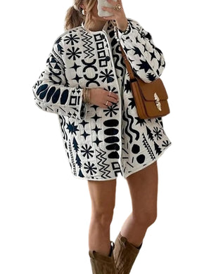 Zhiyouni Womens Lightweight Quilted Puffer Jacket Floral Print Button Down Padded Coat Outerwear(White-XS)
