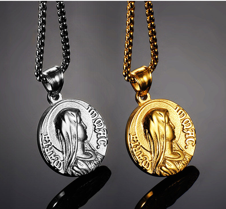 Available in two stunning colors: Gold and Silver, and two unique designs featuring the Jesus and Virgin themes, this necklace is a versatile accessory that complements any outfit.