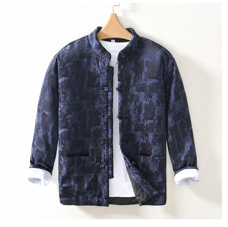 Discover the perfect blend of style and comfort with our Japanese Retro Men's Button Up Casual Warm Cotton Wadded Jacket. This loose-fitting, full-print coat features a unique Chinese stand collar, adding a touch of elegance to your casual wardrobe.
