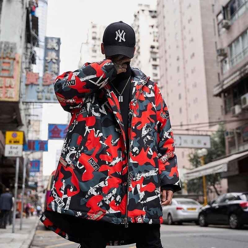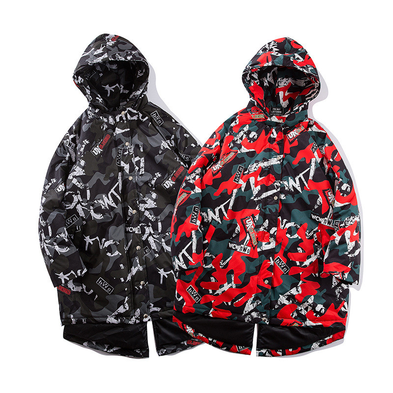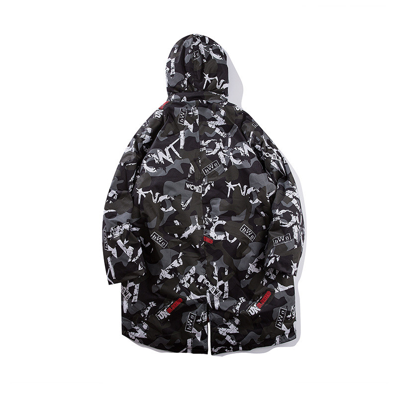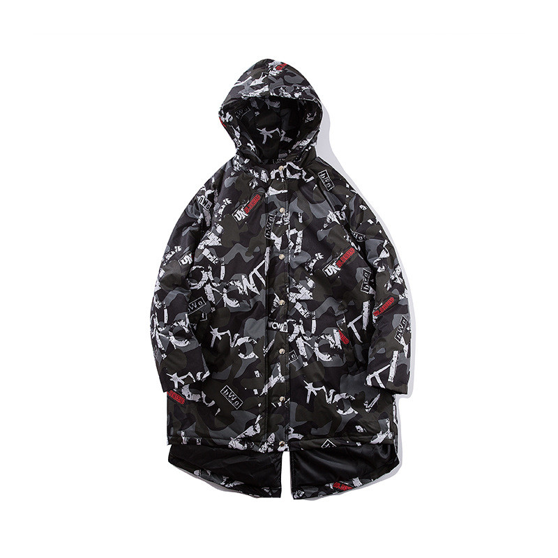 Introducing the ultimate statement piece for your autumn and winter wardrobe: a long, thick cotton coat that combines comfort with cutting-edge style. This mid-length coat is designed for the modern youth, featuring a striking camouflage print that captures the essence of high street fashion from both Europe and America. Whether you're headed out for a casual day or making an impression at an event, this coat is your go-to choice.