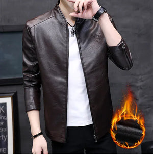 Men's Winter Leather Jacket - Stylish Baseball Collar (Single)