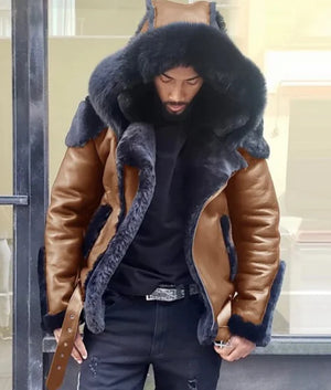 Men's Winter Leather Fur Coat