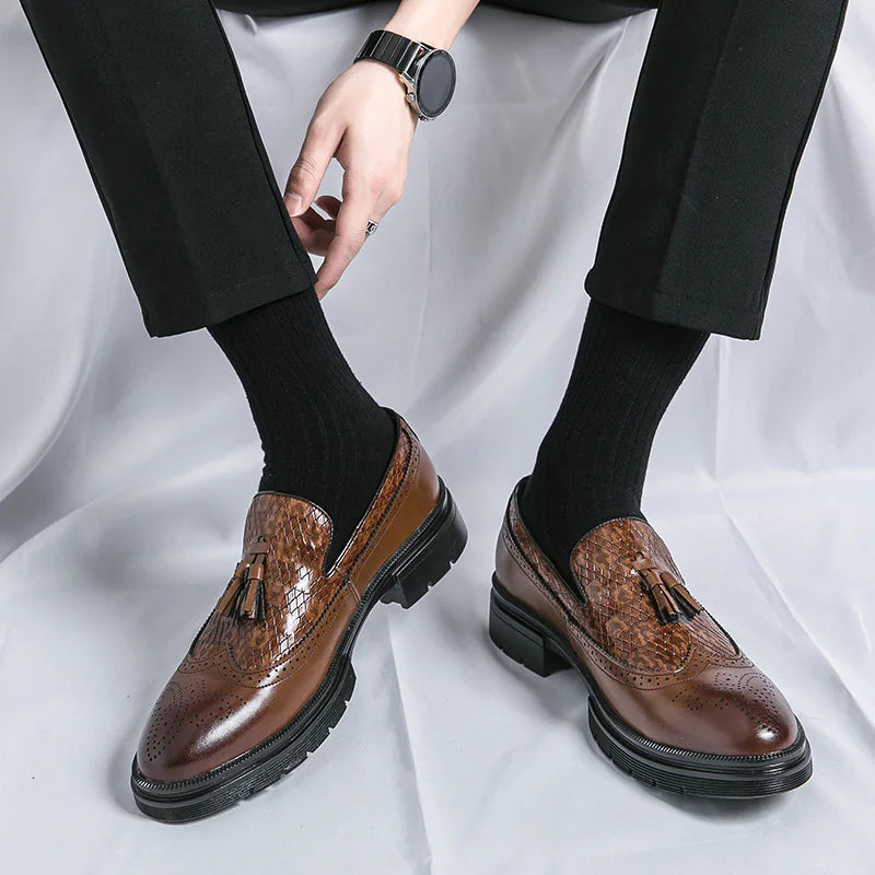 Men's Brogue Carved Dress Shoes with Tassels