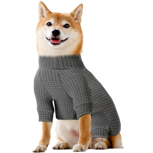 Turtleneck Waffle Knitted Dog Sweater - Puppy Pajamas Thermal Doggie Winter Clothes Knitwear Pet Coats Apparel(LargeGray)