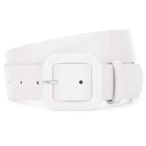 WHIPPY Women Leather Belt Candy Color Fashion Square Buckle Belt Ladies Belt for Jeans Pants Dresses White XL