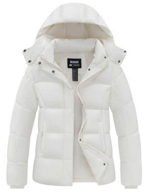 Skieer Womens Winter Jacket Warm Hooded Puffer Coat Windproof Snow Outerwear Coat(WhiteMedium)