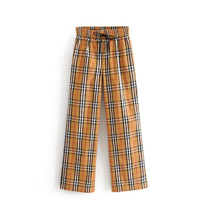 Summer Women's Plaid Wide-Leg Pants with Drawstring