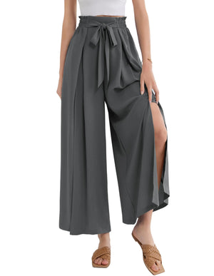 GRACE KARIN Wide Leg Pants for Women High Waisted Business Casual Pants Work Pants Loose Slit Flowy Summer Beach Pants with Pockets Dark Grey L