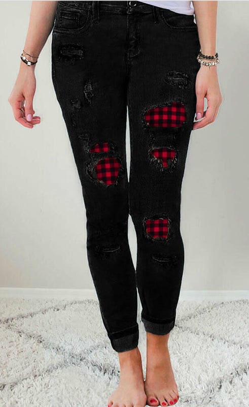 Elevate your wardrobe with our stunning Women's Printed Denim Stretch Pants featuring trendy holes that add an edgy touch to your fashion ensemble. Crafted from high-quality denim made of 81%-90% cotton, these pants are designed to provide both comfort and style. The high waist design not only flatters your figure but also ensures a secure fit throughout the day.