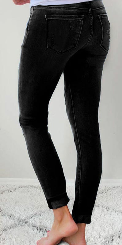 Women's Stretch Denim Pants with Print and Distressed Detail