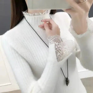 Women's Cashmere Sweater with Pile Collar for Fall/Winter