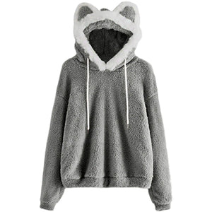 Unisex Hoodies Cat Ear Hooded Sweater Coats Long Sleeve Hoodies Sweatshirt Blouse Pullover Outwear for Women Men