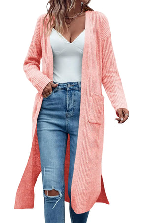 Danedvi Womens Long Cardigan Sweaters Open Front Chunky Knit 2024 Fall Oversized Slouchy Sweater Coats with Pockets Pink