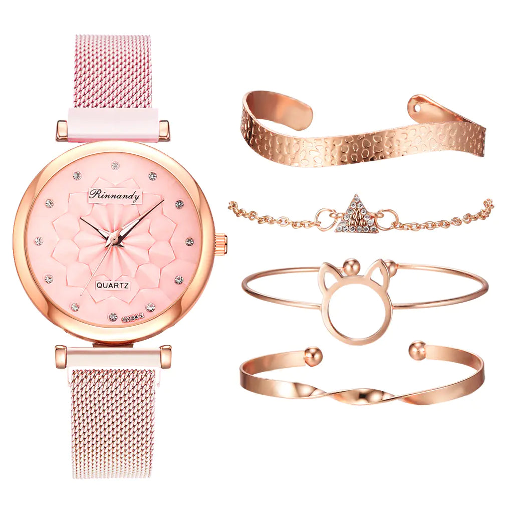 Fashion Women's Watch Set with Bracelet (5 Pieces)